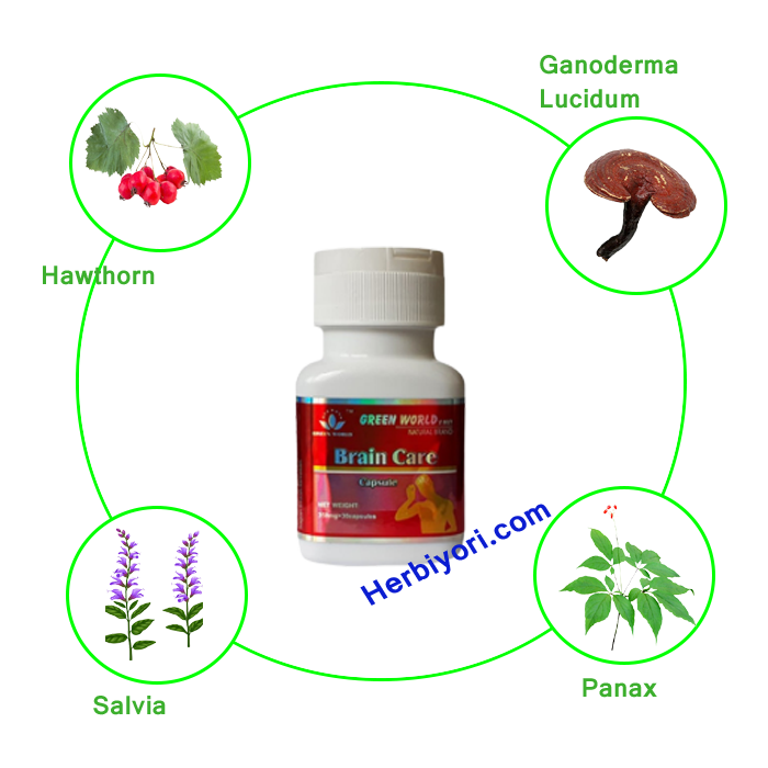 Green World Brain Care Capsule terbuat dari 100% bahan herbal alami khusus yang mampu mengatasi penyumbatan pembuluh darah ke otak Anda secara alami tanpa efek samping. Terbuat dari bahan alami pilihan yang sangat baik untuk organ otak manusia seperti Hawthron, Ganoderma lucidum, Panax, Salvia.