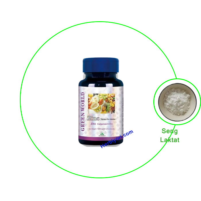 Green World Zinc Tablet Adult terbuat dari 100% bahan herbal alami khusus yang mampu meningkatkan sistem imunitas tubuh, meningkatkan nafsu makan, memacu pertumbuhan berat dan tinggi badan secara alami tanpa efek samping. Suplemen ini mengandung bahan alami racikan tabib ahli dari tiongkok dengan bahan baku Zinc Tablet Adult Seng Laktat.